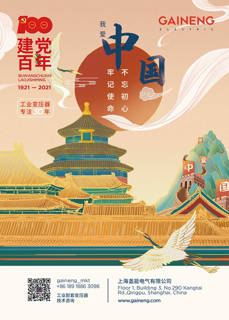 一百載風雨洗禮,一百載崢嶸歲月,一百載日夜兼程,一百載輝煌成就,建黨百年,不忘初心,成就百年輝煌,鑄就盛世安康! 引文作者:上海蓋能電氣市場部(專注干式變壓器30年) 電話:189 1886 3098(微信同號)