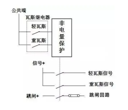 由油、氣、溫等非電氣量組成的變壓器保護(hù)稱為非電氣保護(hù)。主要包括瓦斯保護(hù)、壓力保護(hù)、溫度保護(hù)、油位保護(hù)和冷卻器全停保護(hù)。非功率保護(hù)根據(jù)現(xiàn)場(chǎng)需要跳閘或發(fā)送信息。