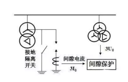 間隙保護(hù)的作用是保護(hù)中性點(diǎn)不接地變壓器中性點(diǎn)的絕緣安全。